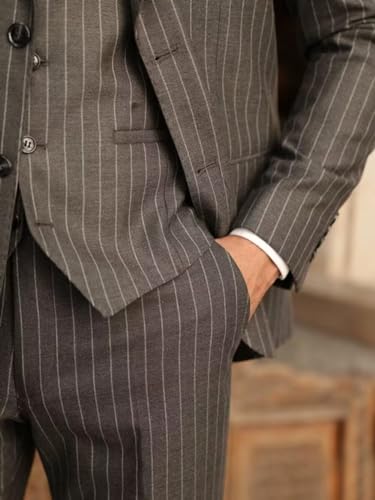 More information about Mens Striped Suit 3 Piece Slim Fit Formal Single Breasted Business Wedding Party Jacket Blazer Vest Pants Suits