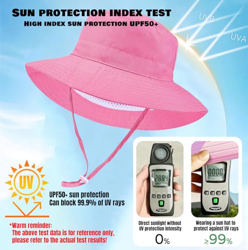 • UPF 50+ Sun Protection & Wide Brim Design - Keep your little one safe under the summer sun with our baby bucket hat, crafted from premium UPF 50+ fabric that blocks 98% of UVA/UVB rays. The generous 2–3 inch brim shields delicate areas like the face, ears, and neck, making it a must-have accessory for outdoor adventures — whether at the beach, park, or playground.