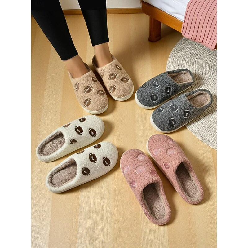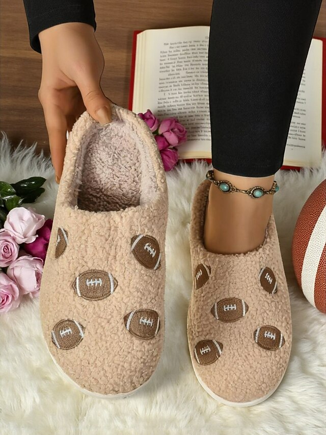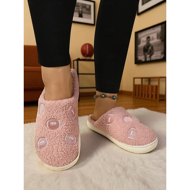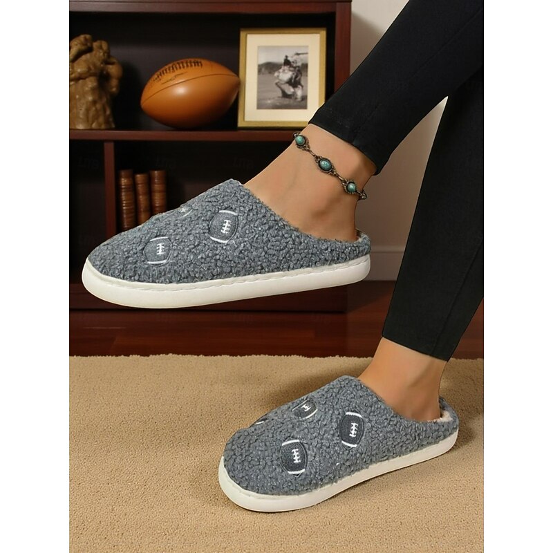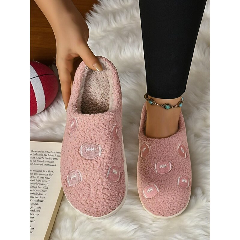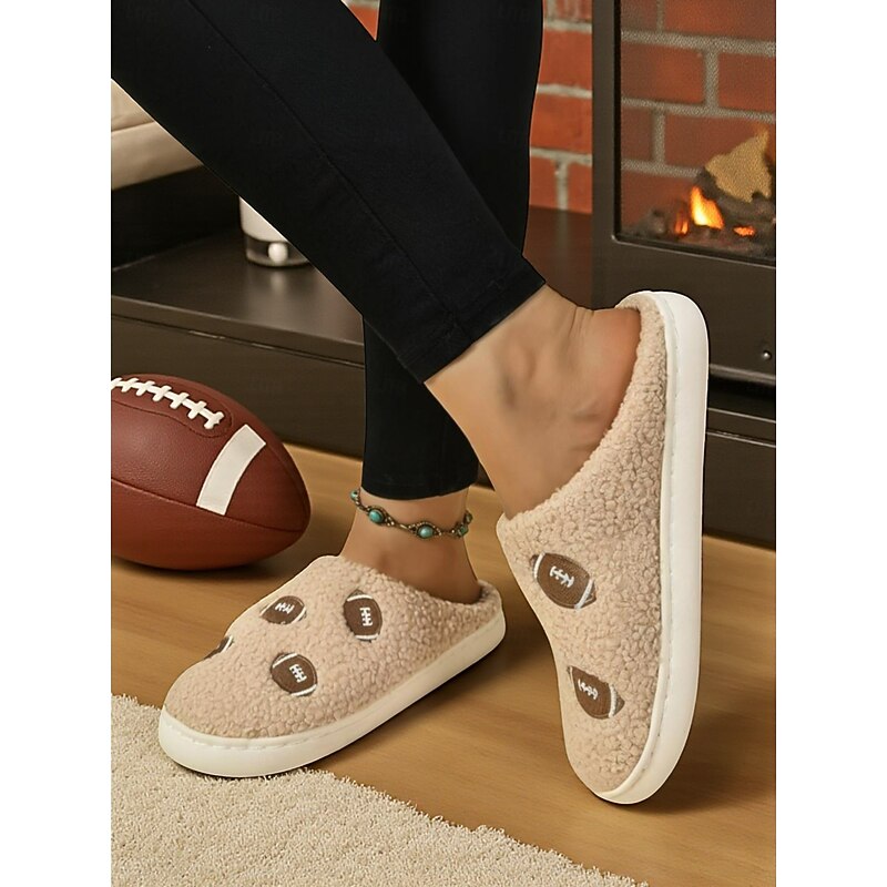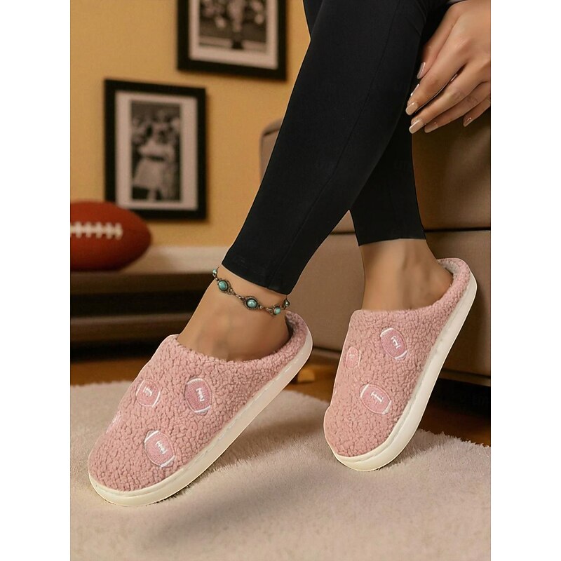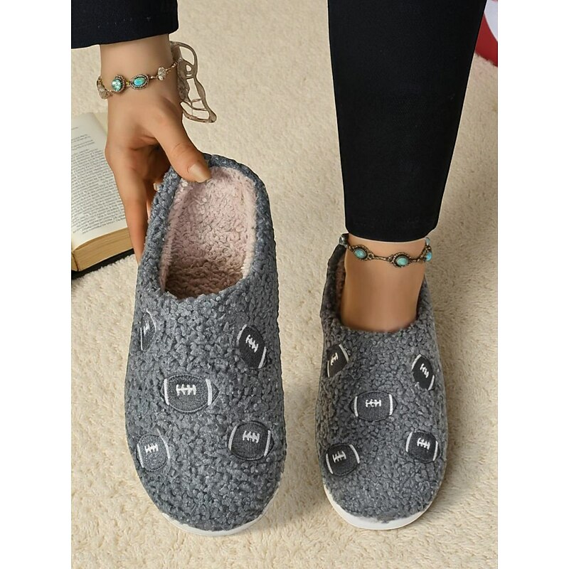 HOT ! Women's Fleece-Lined Rugby Ball Print Slippers – Cozy Indoor House Shoes for Game Day, Lounging and Holiday Gifts