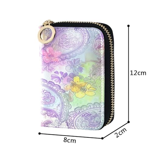 HOT ! Small RFID Credit Card Holder Wallet with Zipper, Leather Wallet Case for Women Colored Paisley Designs