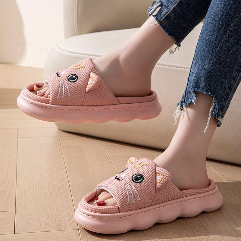 HOT ! Cute Kawaii Multi Colored Cat Linen Slipper Non-Slip Indoor Slipper