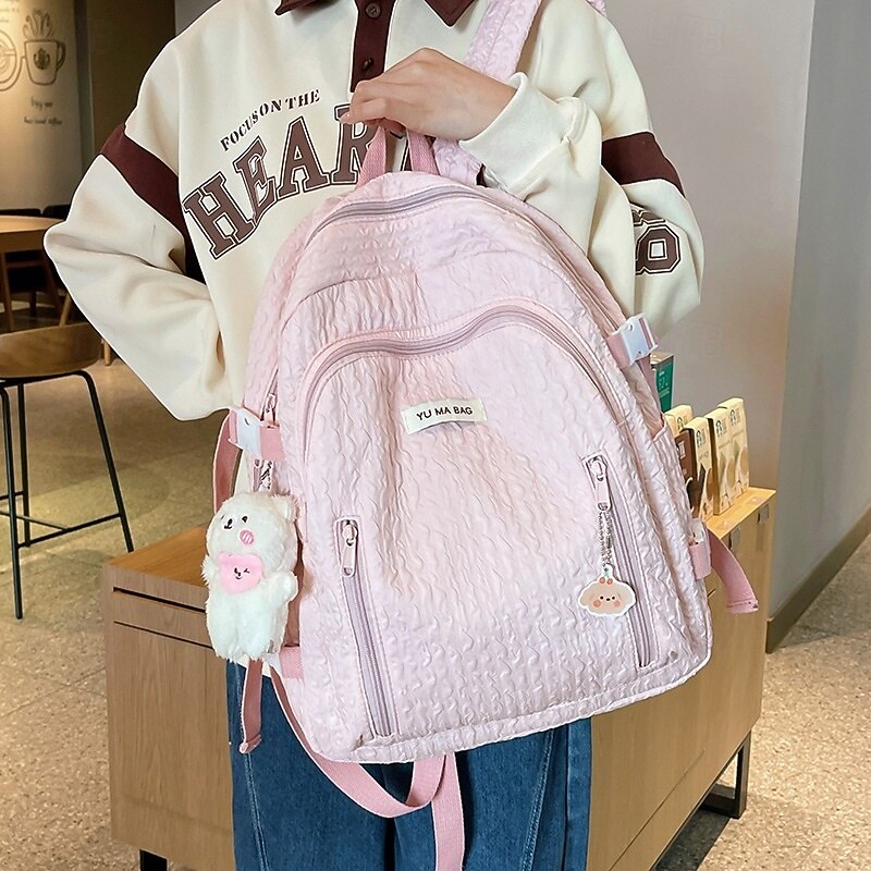 $32.99 - Women's Light Green Textured School Backpack with Cute Teddy Bear Keychain, Large Capacity Lightweight Bookbag for Teen Girls, College, and Casual Daily Use 2025. Shop for cheap College Backpacks online? Buy at lightinthebox.com on sale today!