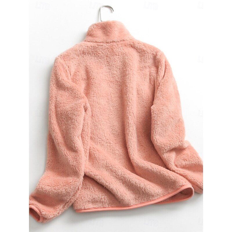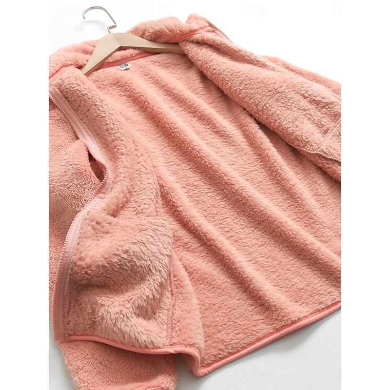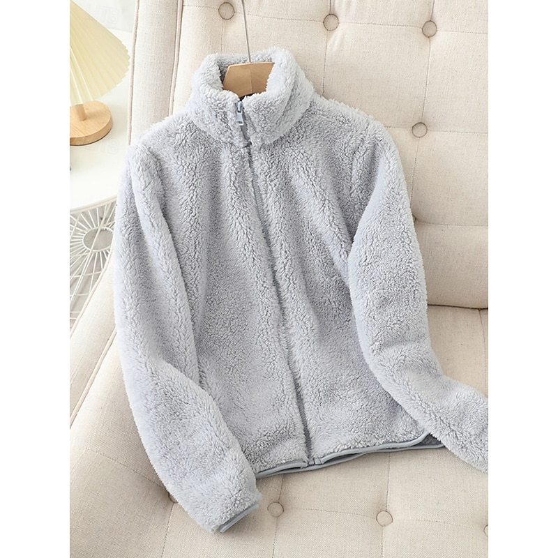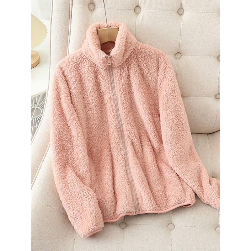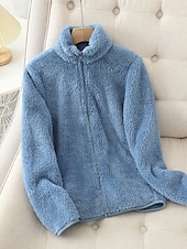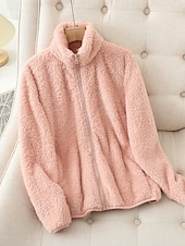 More information about Women's Sherpa Jacket Comfortable Breathable Zipper Pocket Casual Plain Vacation Street Casual Daily Wear Zipper Regular Stand Collar Regular Fit Long Sleeve Outerwear White Pink Blue Spring Fall