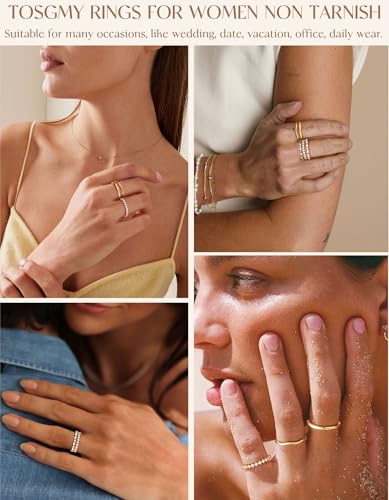 • RINGS FOR WOMEN NON TARNISH: This womens simple dainty ring plated with 14K Gold/Silver,a better color retention effect,which make it non tarnish. Made of high quality brass,ensuring durability and long-lasting shine,nickel lead free,will not cause skin irritation.The addition of sparkling cubic zirconia adds a touch of elegance