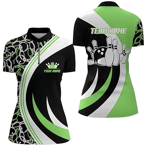 HOT ! Pink Bowling Quarter-Zip Shirt for Women | Pattern Bowling Jersey | Personalized Bowling Team Shirt D105, Black, Purple