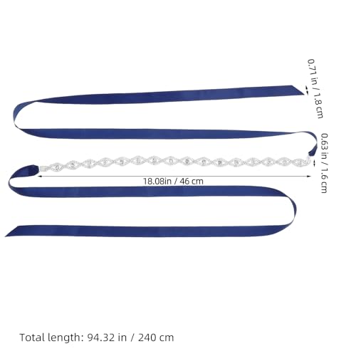 LOGOFUN 2pcs Elegant Rhinestone Bridal Waist Chain with Dark Blue Ribbon and Feather Fascinator Hair Clip for Wedding Bridesmaid Party Accessories 7