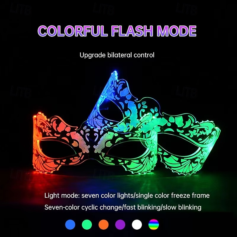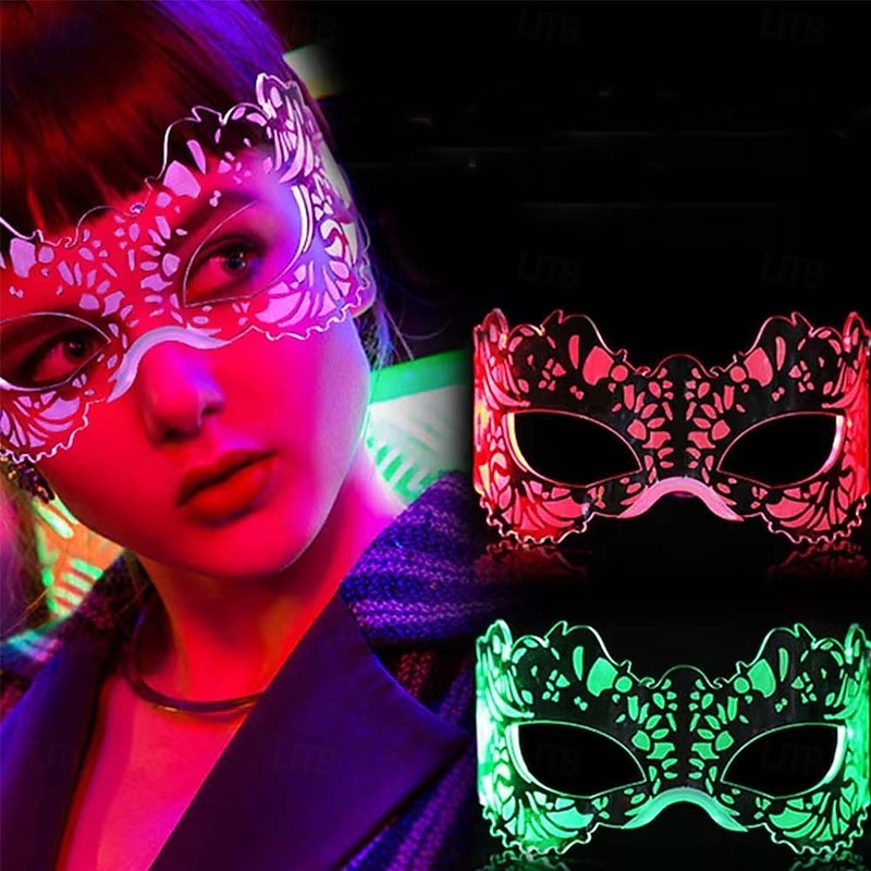 Highlights [Fabric] Crafted from durable and lightweight plastic, these LED glasses ensure comfort and easy wear for long hours. The high-quality material enhances durability, making them suitable for various energetic events. [Silhouette] Designed with an adjustable fit, these glasses cater to a wide range of face sizes and shapes, ensuring a secure and comfortable wearing experience for both kids and adults. [Design Highlights] Featuring intricate lace-like patterns, these glasses stand out with their vibrant LED lights cycling through colors like red and green. This eye-catching design element adds a mysterious and stylish touch, perfect for any festive occasion. [Occasions] Ideal for Halloween, Carnival, Mardi Gras, and performance parties, these LED glasses are the perfect accessory for creating a memorable and dazzling impression at nightclubs, dance parties, and concerts. [Size Notice] Suitable for both kids and adults, these glasses offer versatility and inclusivity with their adjustable design, ensuring a comfortable fit for all wearers.