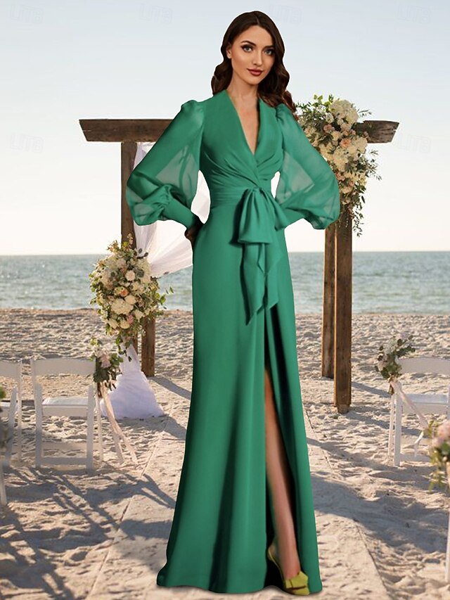 $139.99 - Mermaid / Trumpet Evening Gown Elegant Dress Formal Wedding Guest Sweep / Brush Train Long Sleeve V Neck Fall Wedding Guest Chiffon with Slit Strappy 2025. Shop for cheap Casual / Daytime Wedding online? Buy at lightinthebox.com on sale today!
