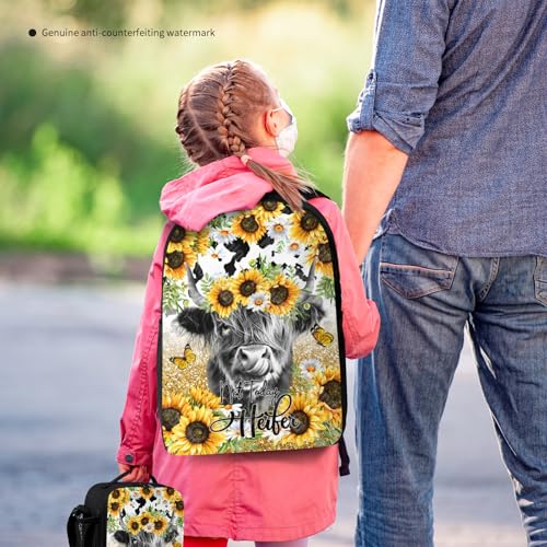 Girls Backpack for School, 3pcs Highland Cow Backpack for Girls Boys with Lunch box Pencil Case, Kids Cow Print Bookbag Teen Backpacks for Elementary Middle School Travel Back Pack 17″ Large Capacity 7