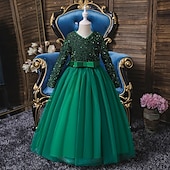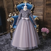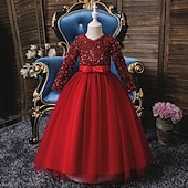 More information about Flower Girl Dress Girls' Dress Party Dress Performance Wedding Party Cute Sweet Thanksgiving New Year Sequins Long Sleeve V Neck Red Blue 4-13 Years