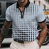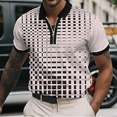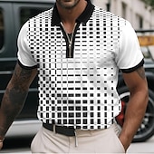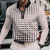 More information about Men's Geometric Pattern Polo Long Sleeve Turndown Modern Casual Sports & Outdoor Athleisure Casual Daily Zipper 3D Print Spring Fall Winter dark brown Light Brown White
