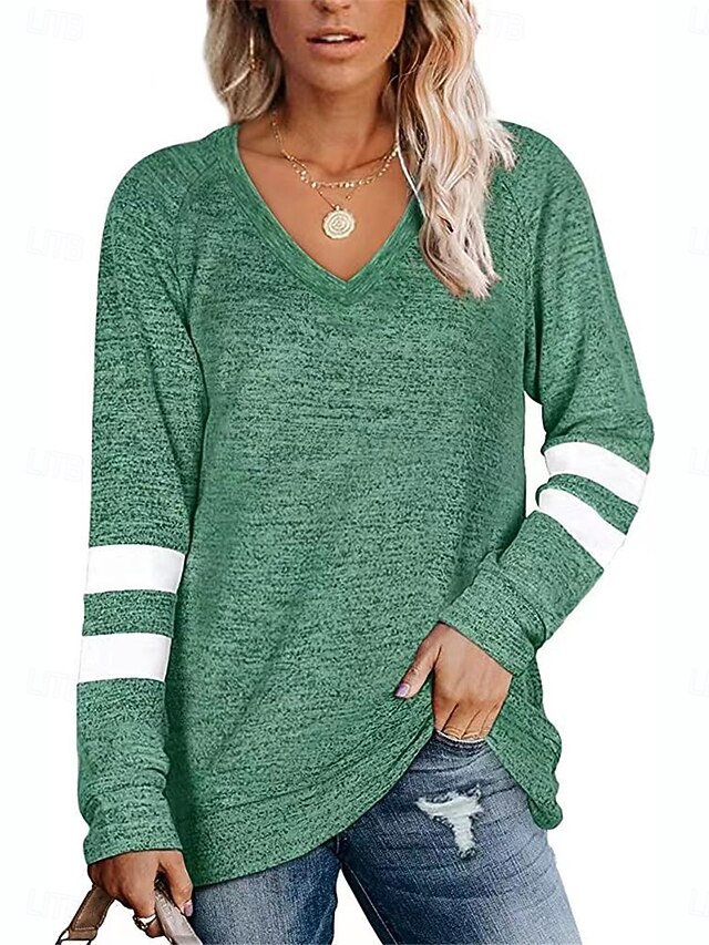 More information about Women's T Shirt Striped Fashion Stylish Modern Long Sleeve V Neck Regular Tops Daily Weekend Print Black Blue Green Khaki Summer