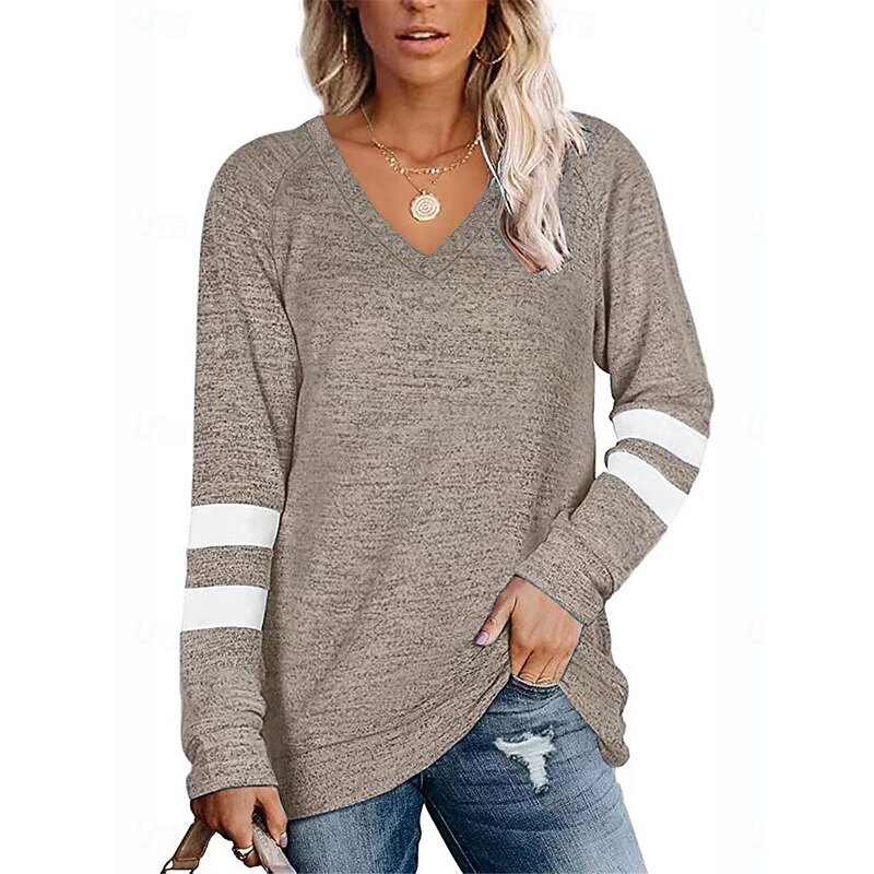 Women's T Shirt Striped Fashion Stylish Modern Long Sleeve V Neck Regular Tops Daily Weekend Print Black Blue Green Khaki Summer 15