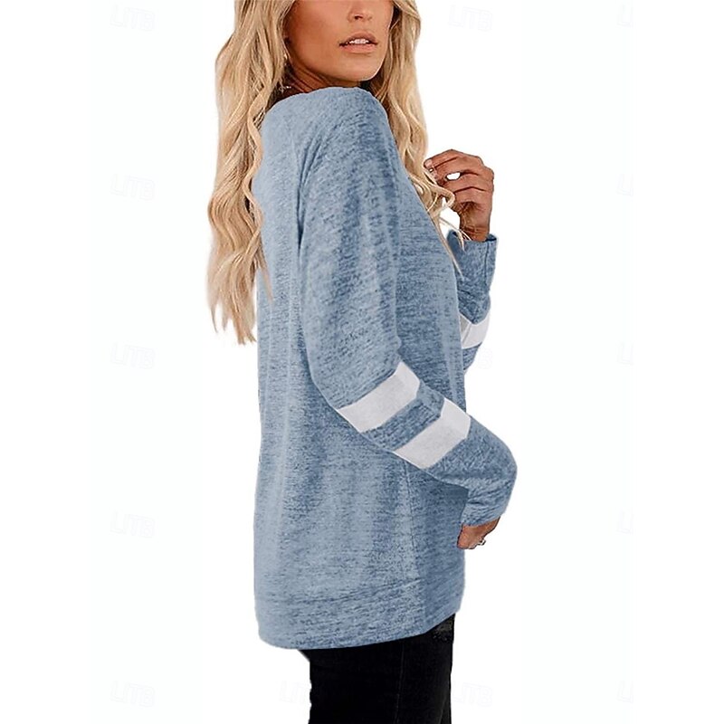 Women's T Shirt Striped Fashion Stylish Modern Long Sleeve V Neck Regular Tops Daily Weekend Print Black Blue Green Khaki Summer 16