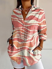 More information about Women's Shirt Graphic Geometric Vintage Daily Casual Long Sleeve Shirt Collar Regular Tops Daily Holiday Print Pink Green Khaki Summer Spring