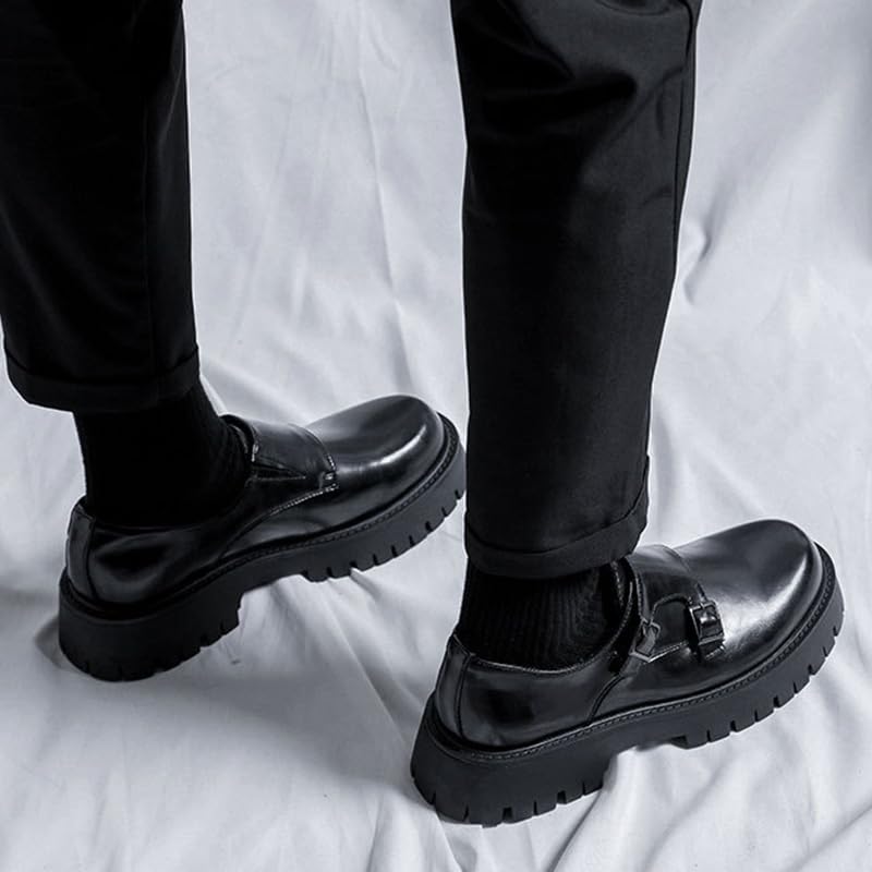 More information about Men's Leather Black Business Platform Work Shoes Slip-on Double Monk Strap Dress Oxford Sneakers Fashion Non-Slip Low Top Walking Shoes