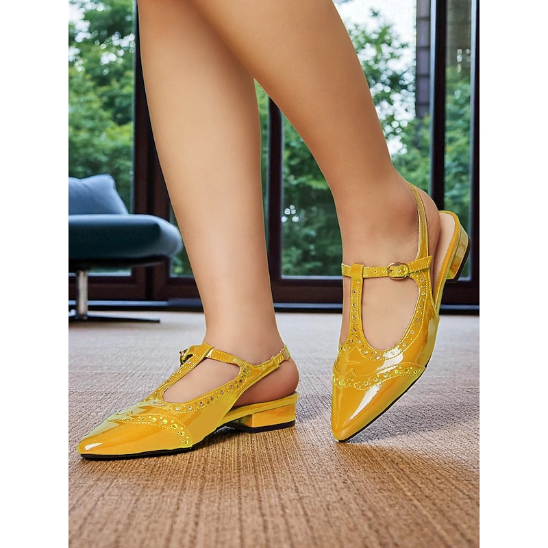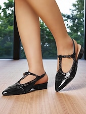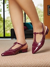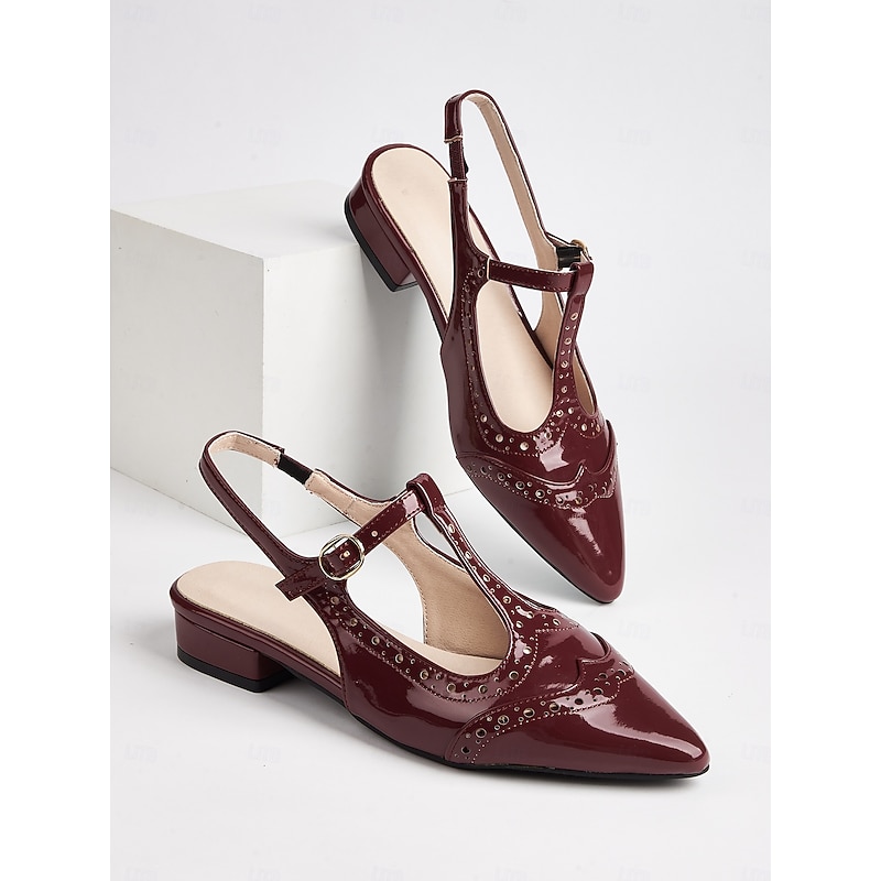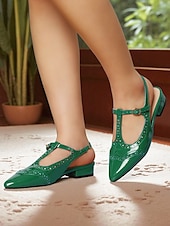 More information about Women's Green Patent Leather T-Strap Flats –1950s Vintage Oxford Style Brogue Slingback Shoes for Teens and Ladies, Ideal for Spring Outfits, Daily Wear, and Garden Parties