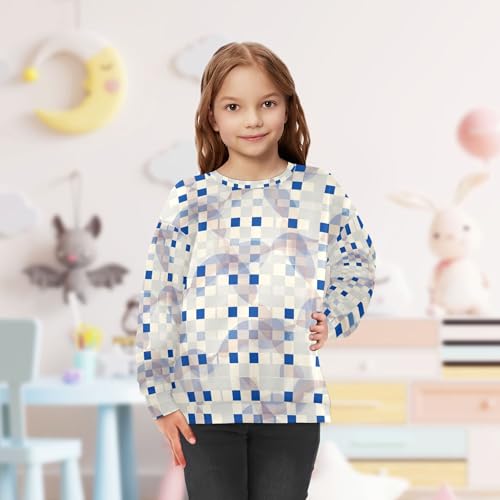 JUNZAN Blue White Checkered Kids Girls Sweatshirt Hoodie Long Sleeve Sweatshirt With Hoodie Athletic 4T 5