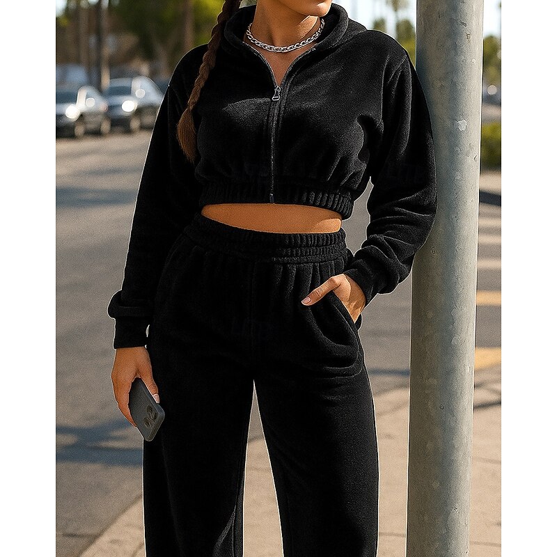 $27.99 - Women's Tracksuit Sweatpants Track Pants Hooded Zipper Pocket Solid Colored Clothing Suit Fall & Winter Black White Gym Training Running Windproof Long Sleeve Sport Activewear Micro-elastic Loose Fit 2025. Shop for cheap Tracksuits online? Buy at lightinthebox.com on sale today!