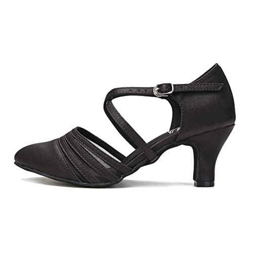 Womens Ballroom Dance Shoes for Social Beginner Salsa Latin Closed Toe Dancing shoes 2 1/2 inches Heels S12 5