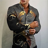 Highlights [Fabric]: Crafted from premium polyester, this men's shirt ensures a comfortable and breathable experience, making it ideal for cooler fall and winter months. [Fit]: Designed in a regular fit, it provides a flattering silhouette that marries modern style with everyday comfort, suitable for a wide range of body types. [Design Highlights]: Featuring an eye-catching geometric print in black, red, gold, and gray, this shirt stands out with its luxurious swirling gold motifs. The button-down style and structured turndown collar add an element of sophistication, perfect for both casual and formal settings. [Occasions]: Versatile in nature, this shirt is perfect for daily wear, casual outings, and outdoor activities. It seamlessly integrates into both streetwear and sports fashion wardrobes, offering a stylish solution for any event. [Size Range]: Available in sizes S through 5XL, this shirt accommodates a broad spectrum of sizes, ensuring the perfect fit for every man.