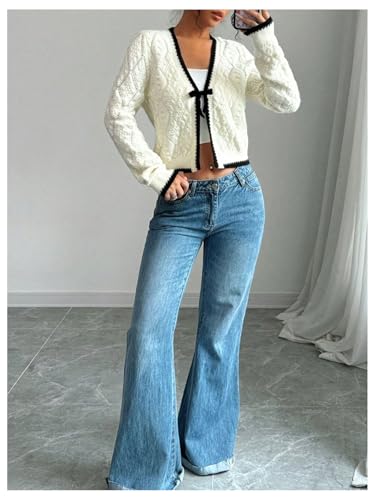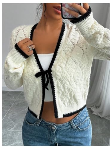 GORGLITTER Women's Tie Front Cropped Cardigan Dressy Fall Sweaters Long Sleeve Knit Crochet Tops 6