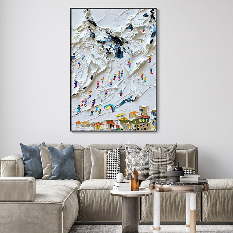 Handmade Oil Painting Canvas Wall Art Decoration Modern Abstract Ski Sports Landscape for Home Decor Rolled Frameless Unstretched Painting 1