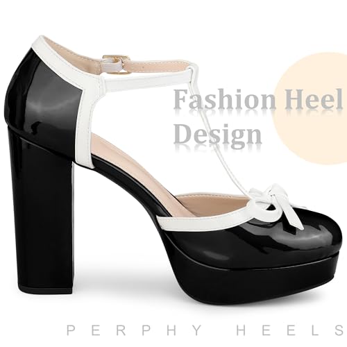 Perphy Bow T-Strap Platform Chunky Heels Pumps for Women 4