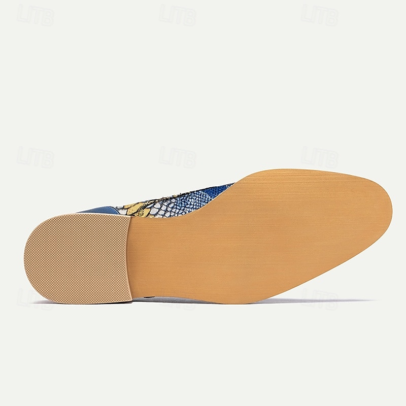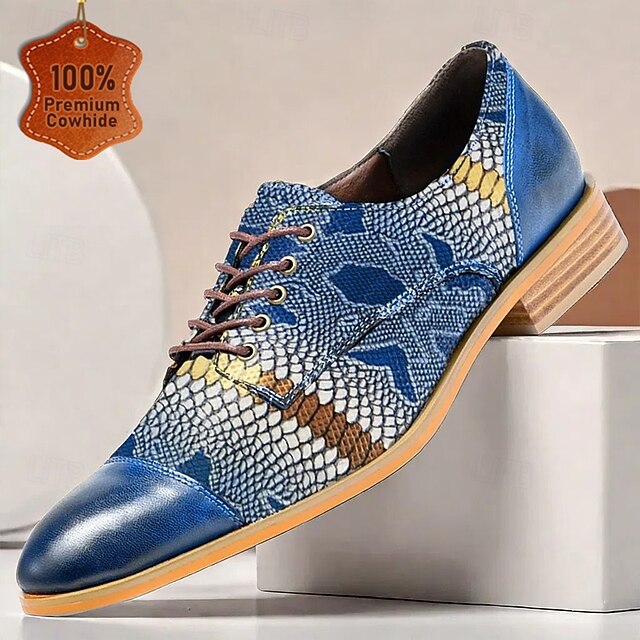 Men's Premium Cowhide Leather Oxford Shoes with Snake Print – Blue Casual Dress Shoes for Formal & Party Occasions