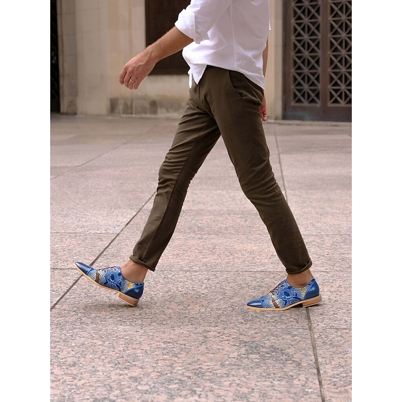 More information about Men's Premium Cowhide Leather Oxford Shoes with Snake Print – Blue Casual Dress Shoes for Formal & Party Occasions