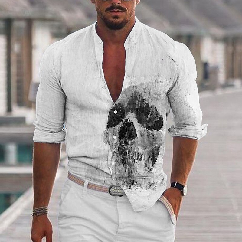 $26.99 - Men's Shirt Graphic Shirt Skull Stand Collar Black White+Black White Light Grey Gray 3D Print Outdoor Halloween Long Sleeve Print Button-Down Clothing Apparel Fashion Designer Casual Comfortable 2025. Shop for cheap Halloween Shirts online? Buy at lightinthebox.com on sale today!
