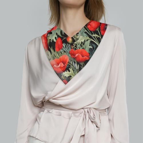 More information about Red Poppy Flowers Pattern Silk Scarf for Women Girls Hair Head Silk Scarf Square Purse Satin Scarves Bandana Wraps