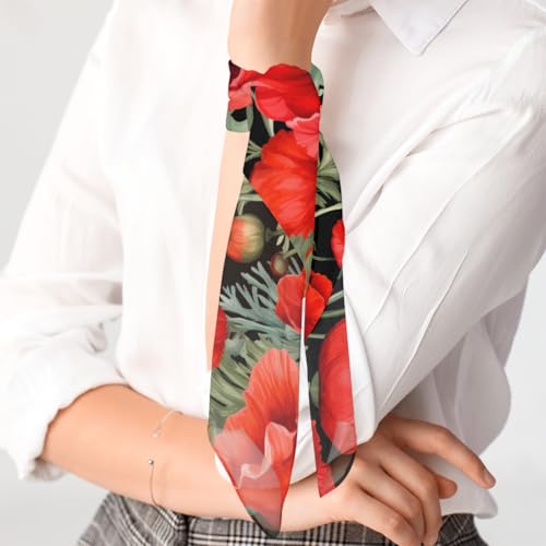 Red Poppy Flowers Pattern Silk Scarf for Women Girls Hair Head Silk Scarf Square Purse Satin Scarves Bandana Wraps 1