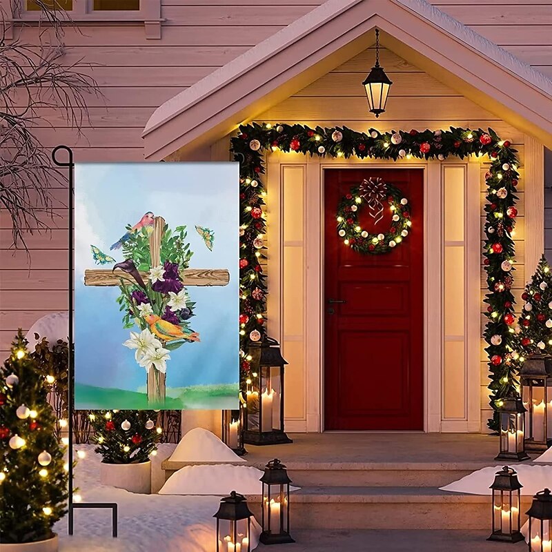 Jesus Garden Flag 12x18Inch Outdoor Decorations He is Risen Welcome Garden Patio Flag Flower Yard Flag Double Sided Holiday Outdoor Flags 1pc 9