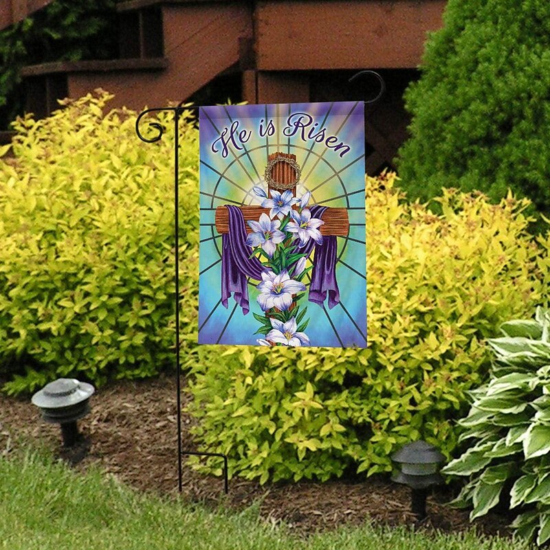 Jesus Garden Flag 12x18Inch Outdoor Decorations He is Risen Welcome Garden Patio Flag Flower Yard Flag Double Sided Holiday Outdoor Flags 1pc 8
