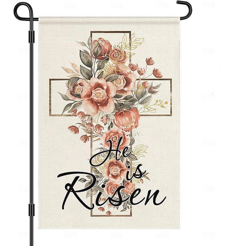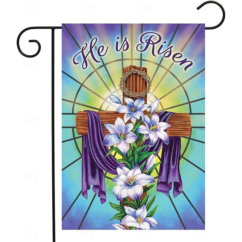 Jesus Garden Flag 12x18Inch Outdoor Decorations He is Risen Welcome Garden Patio Flag Flower Yard Flag Double Sided Holiday Outdoor Flags 1pc 28