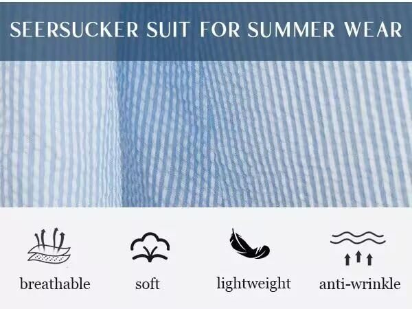 • 【Causal Suits for Occasions】HUUTOE seersucker suit mens slim fit, suitable for multiple occasions, such as beach wedding, summer, daily casual, party, prom, business, dinner, banquet, graduation, funeral, Homecoming, holiday, work and other Occasions.