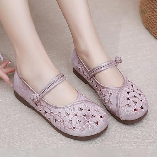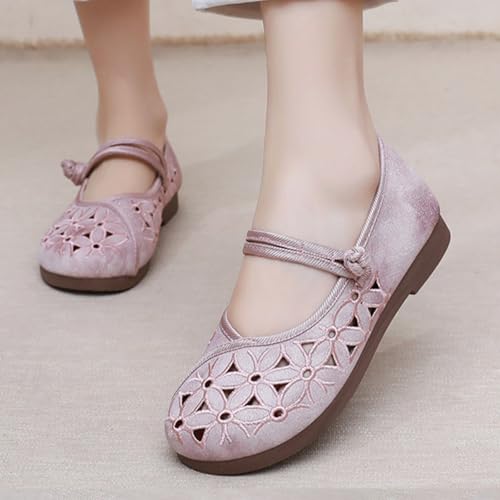 • Exquisite Chinese-Inspired Design:Blending classic Mary Jane style with traditional Chinese frog button closures, these flats feature intricate flower embroidery on breathable cut-out canvas. The round toe design offers a comfortable fit while adding a touch of elegance.