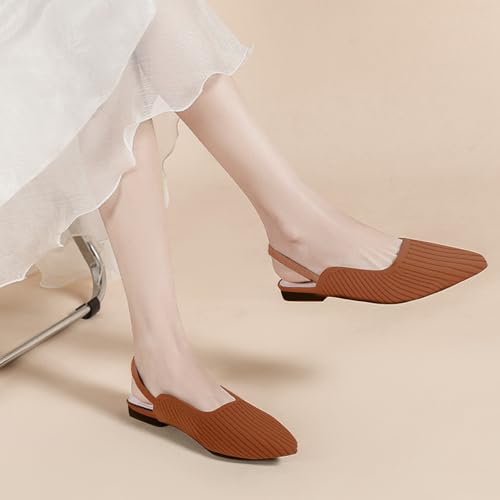 Slingback Flats for Women Pointed Toe Flats Breathable Knit Comfortable Dressy Casual for Work Office Slip on Ballet Flats Brown US8 5