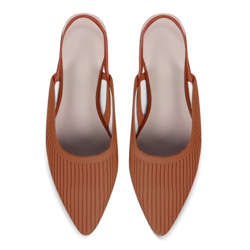 Slingback Flats for Women Pointed Toe Flats Breathable Knit Comfortable Dressy Casual for Work Office Slip on Ballet Flats Brown US8 1