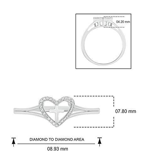 Cali Trove 1/20 CT Natural Diamond Heart Cross Rings for Women | Diamond Fashion Rings | Religious Heart Cross Rings | Gifts for Her | Promise Rings Jewelry Gifts for Women 5