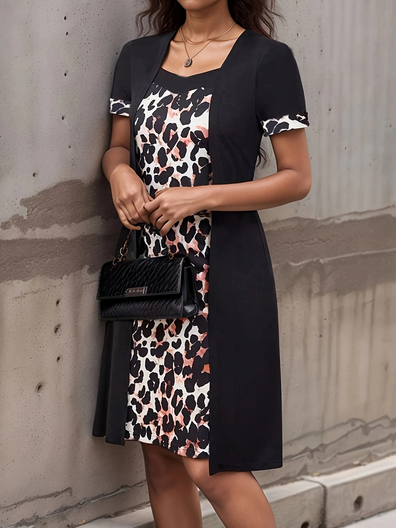 2025 Summer Elegant Dress Women Leopard Print Short Sleeve Lady Casual Loose Plus Size Dress .