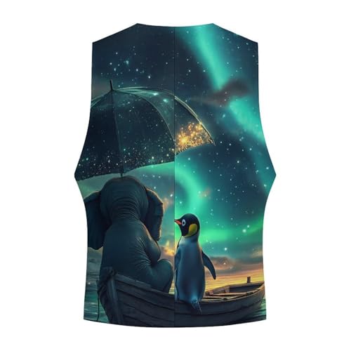 Northern Lights Elephant Penguin on Boat Mens Slim Fit Suit Vest Dress Waistcoat Casual Business Vest 6