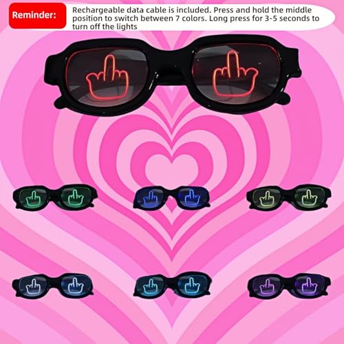 HOT ! Light Up Middle Finger Glasses - 7 Color LED Mood, Rechargeable Hilarious Party Glasses for Adults, Teens, Couples - Perfect for Concerts, Raves & Troll Gifts!