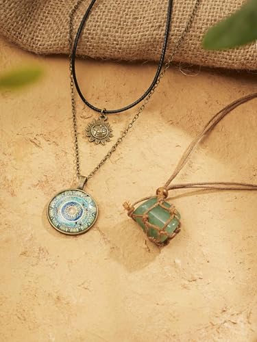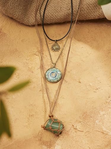 Item display length: 16 inchesMaterial: StoneMetal type: ZincChain type: CableGem type: No GemstoneBrief content visible, double tap to read full content. Full content visible, double tap to read brief content. Bundles with this item Previous page MINACHI Bohemian Multi Layer Necklaces -2% $25.39 Was: $25.98 MINACHI Multilayer Necklace & Created Turquoise Bangle -9% $28.09 Was: $30.98 Next page See all bundlesBohemian Style: Exquisite multi-layer necklace with a retro, ethnic-inspired design for a special, eye-catching look.Centerpiece Pendant: Showcases a vibrant green crystal sun and floral motif pendant for a touch of vintage charm.Versatile Accessory: Perfect for elevating casual or formal outfits with its bold, statement-making presence.Quality Craftsmanship: Meticulously handcrafted with attention to detail for long-lasting wear.Jewelry Dimensions: Necklace length measures approximately 16 - 28 inches (41 - 72 cm).Service: If you have any questions about the product, please feel free to contact us, and we will provide you with a satisfactory solution. Perfect for everyday use. excellent materials and excellent craftsmanship ensure long-lasting durability.