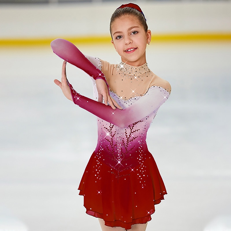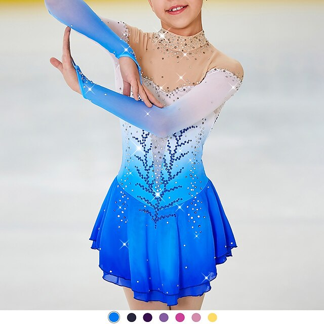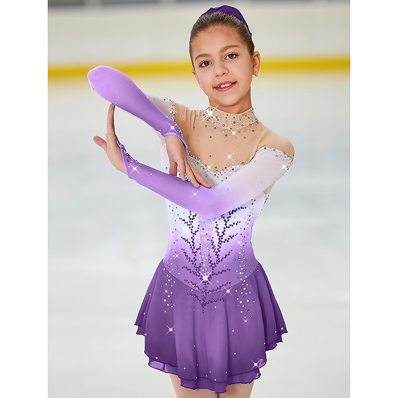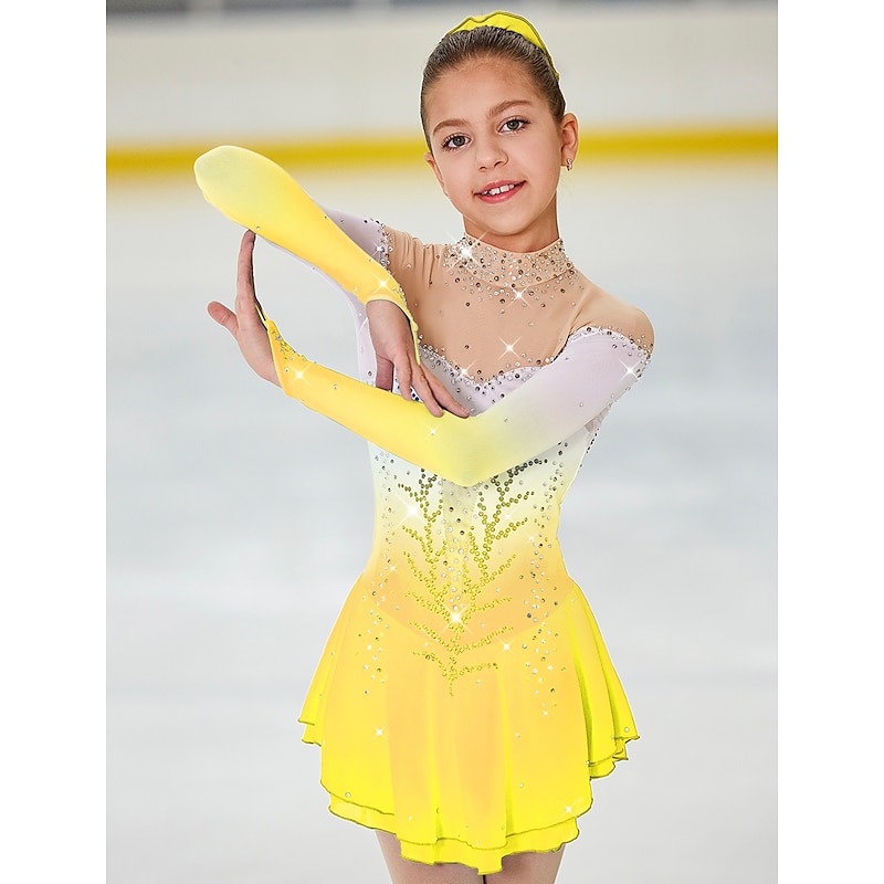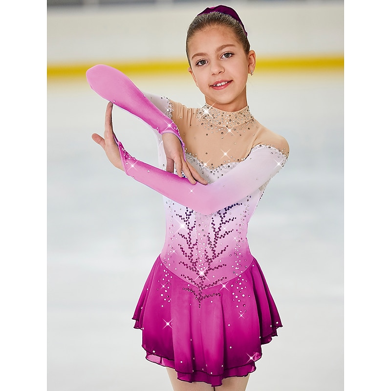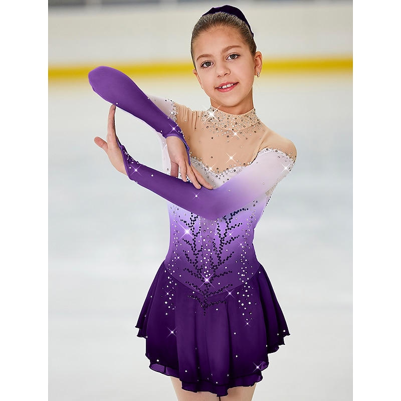 More information about Figure Skating Dress Women's Girls' Ice Skating Dress Outfits Light Yellow Yan pink Dark Purple Open Back Halo Dyeing Mesh Spandex High Elasticity Competition Skating Wear Handmade Jeweled Rhinestone