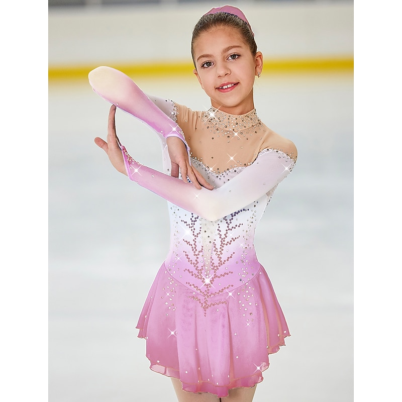 HOT ! Figure Skating Dress Women's Girls' Ice Skating Dress Outfits Light Yellow Yan pink Dark Purple Open Back Halo Dyeing Mesh Spandex High Elasticity Competition Skating Wear Handmade Jeweled Rhinestone