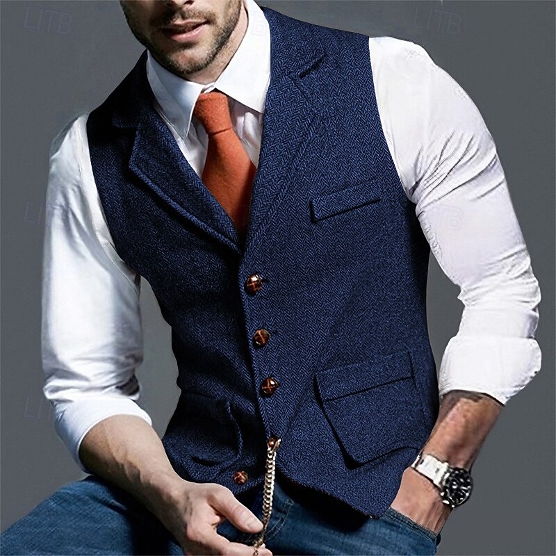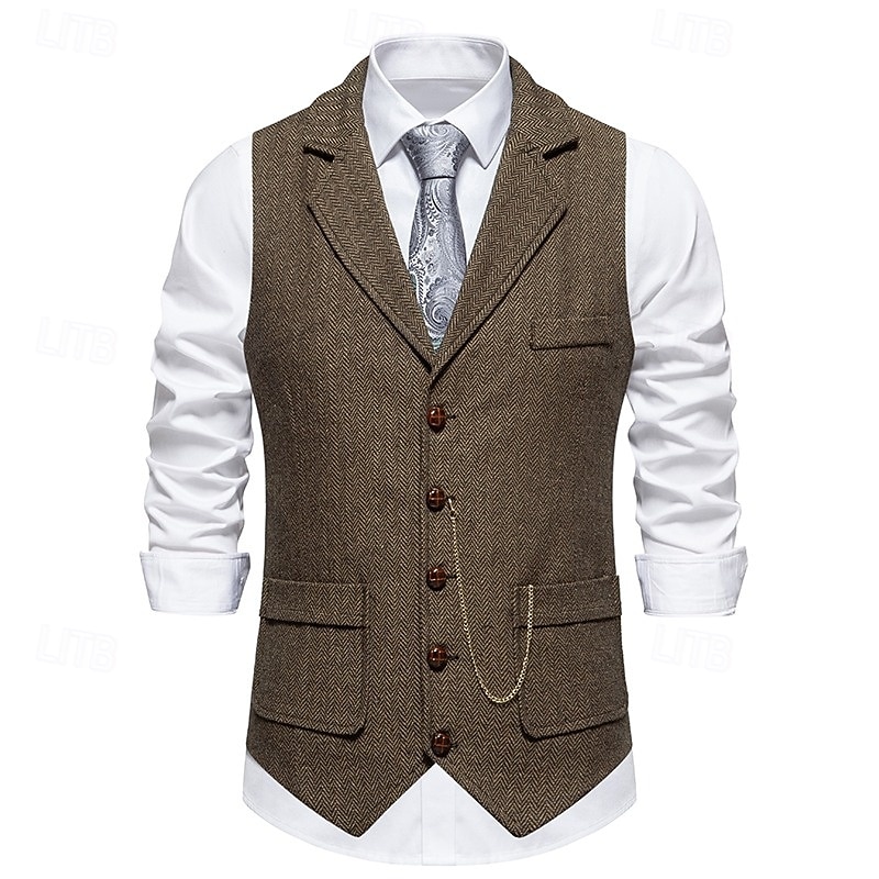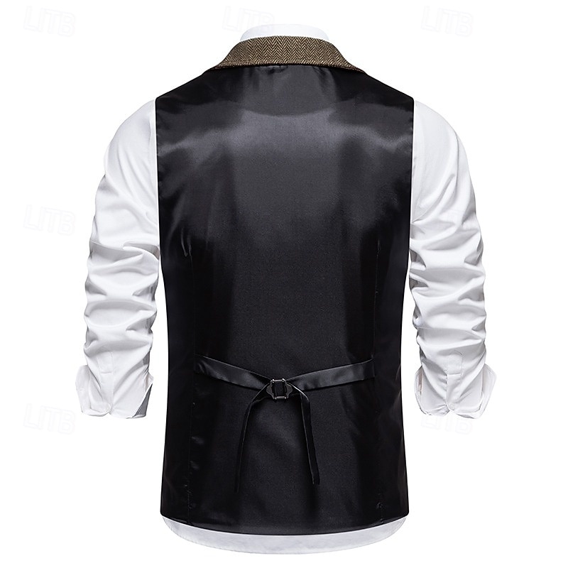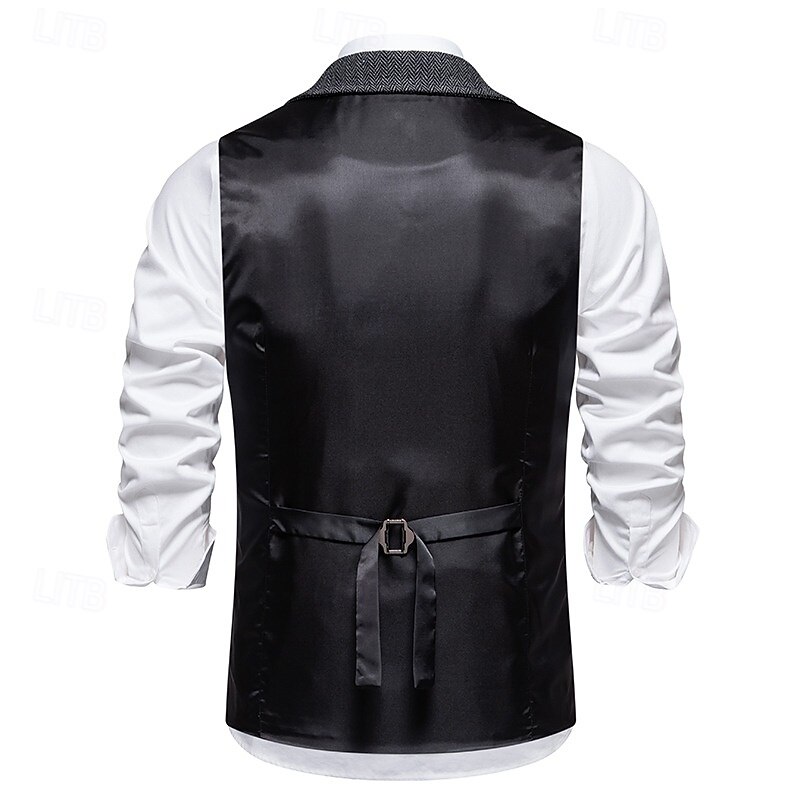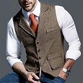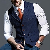 More information about Men's Vest Waistcoat Gilet Vacation Party Business Fashion Casual Spring Fall Pocket Buttons Polyester Comfortable Plain Single Breasted One-button Lapel Regular Fit Navy Blue Coffee Gray Vest