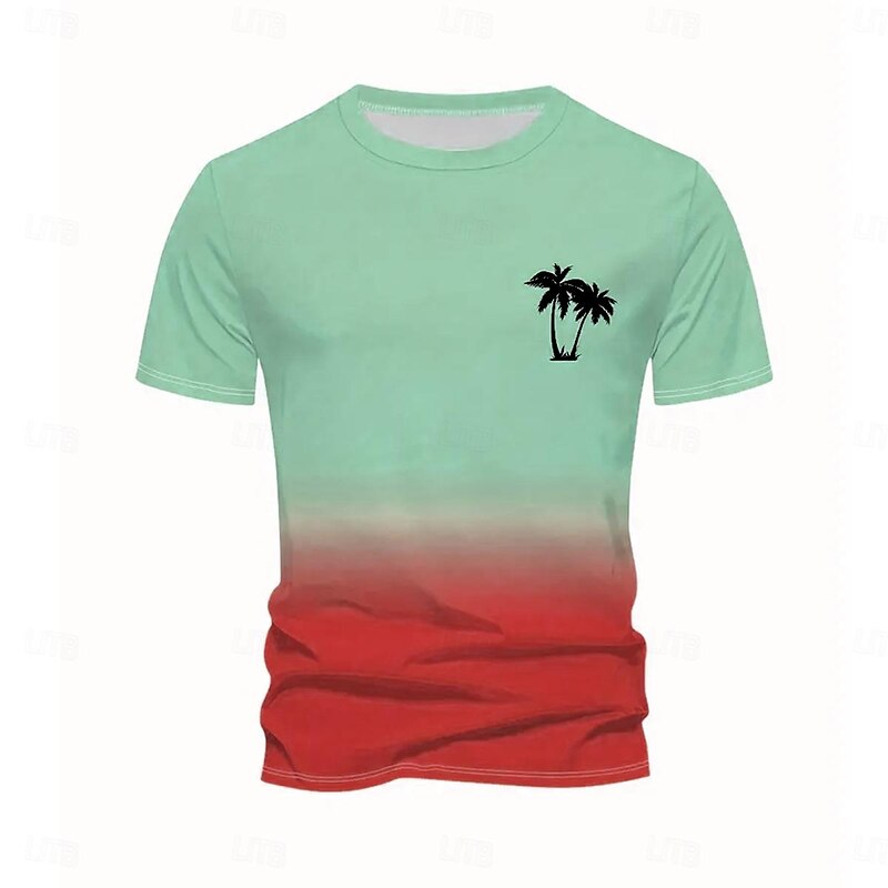Men's Gradient Coconut Tree T Shirt Short Sleeve T shirt 3D Print Crew Neck Shirt Fashion Street Style Outdoor Street Pink Blue Green Summer Spring Clothing Apparel S M L XL XXL 3XL 3
