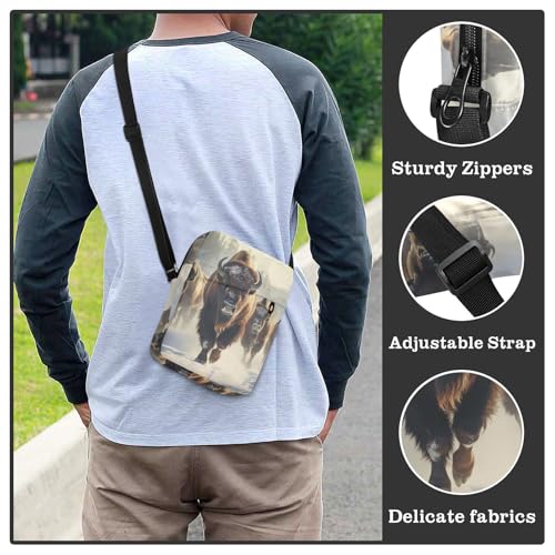 HOT ! Crossbody Sling Bag for Women Men, Zipper Closure Messenger Bags Bison Herd Print with Card Phone Passport Compartment 6.6×9.4×2.5 IN